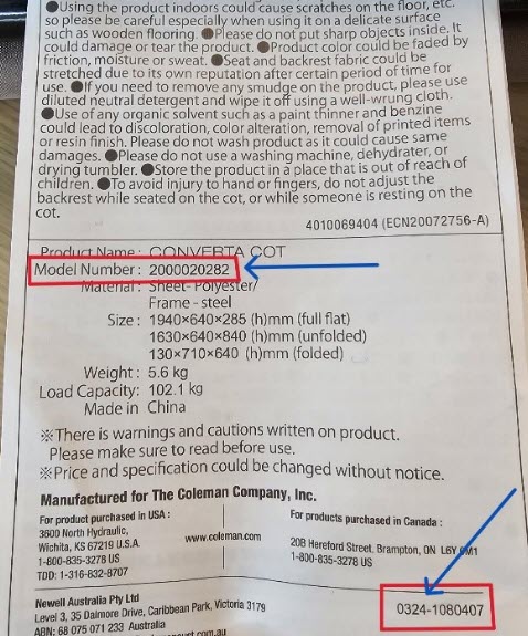 First, check the color of the product. These cots are either tan or white and will have the Coleman logo located in the top-right corner or on the footrest.